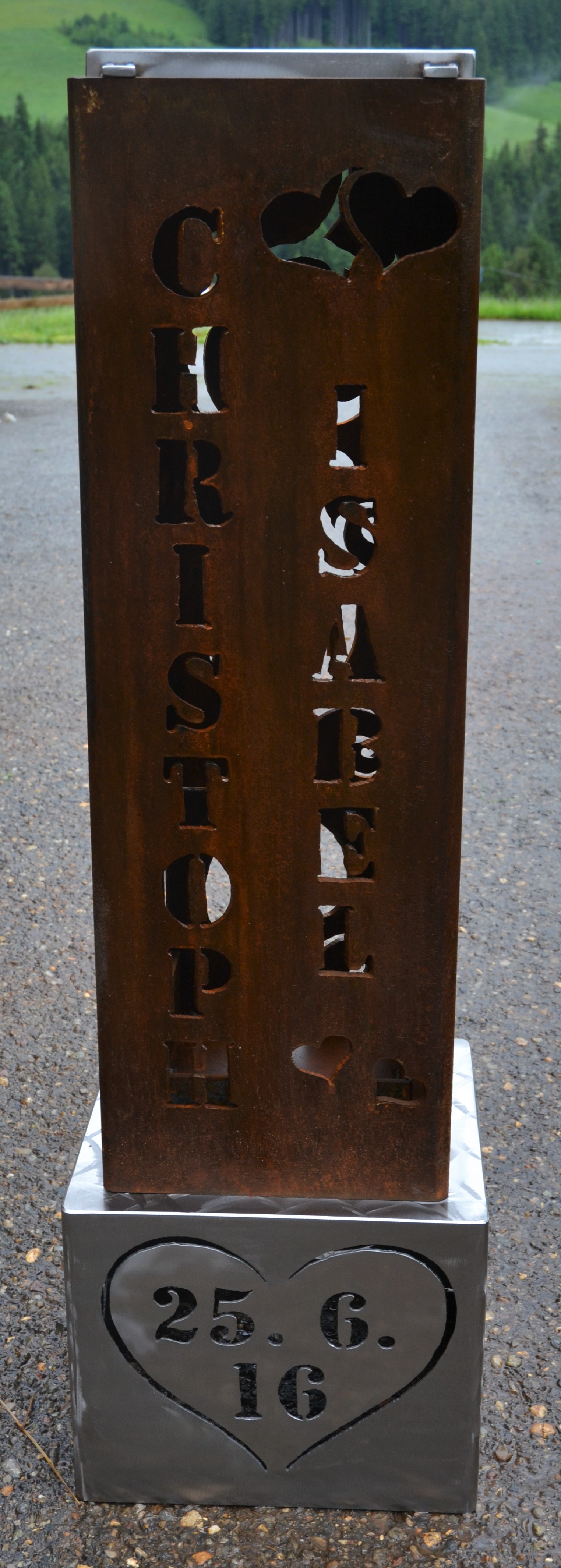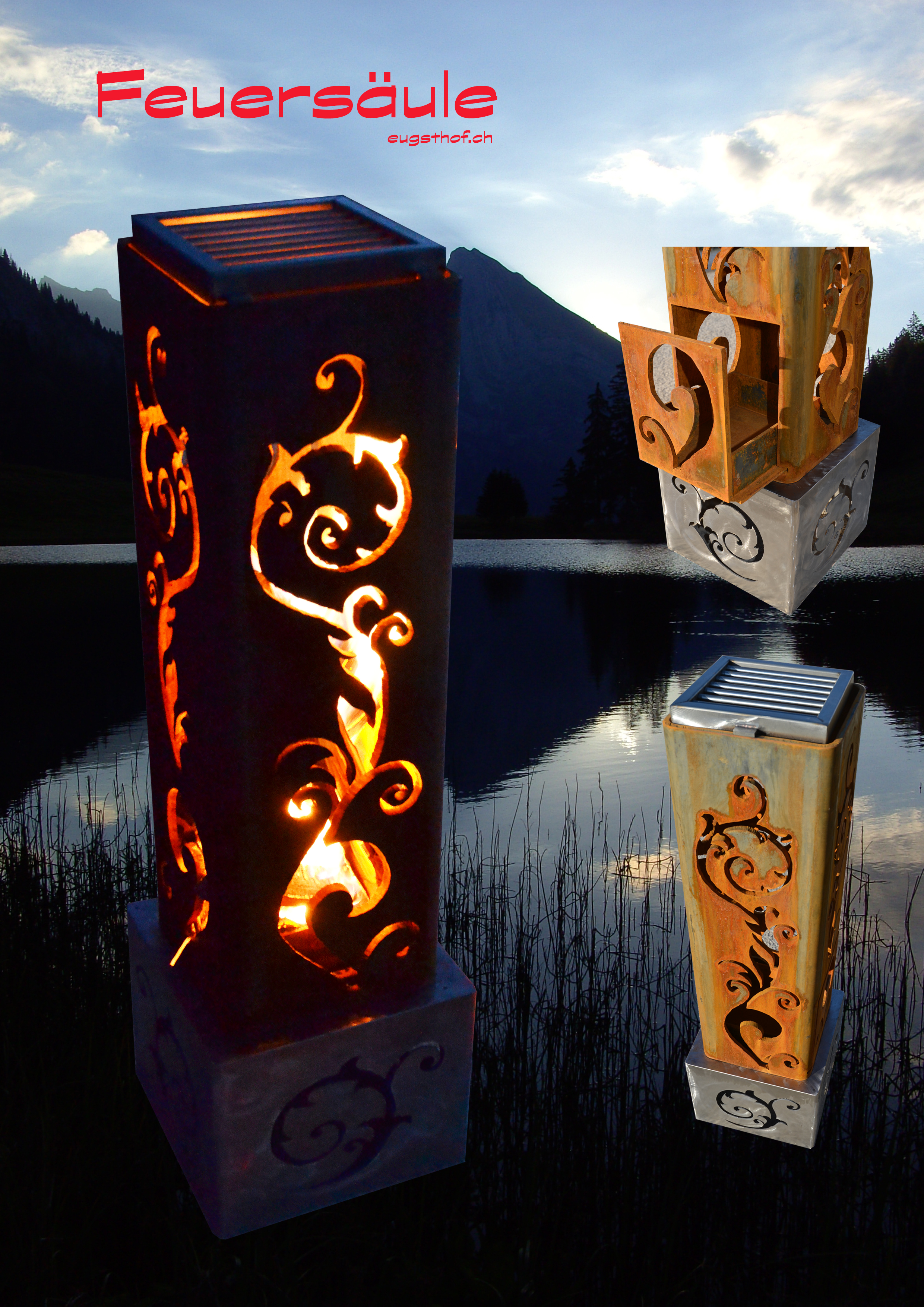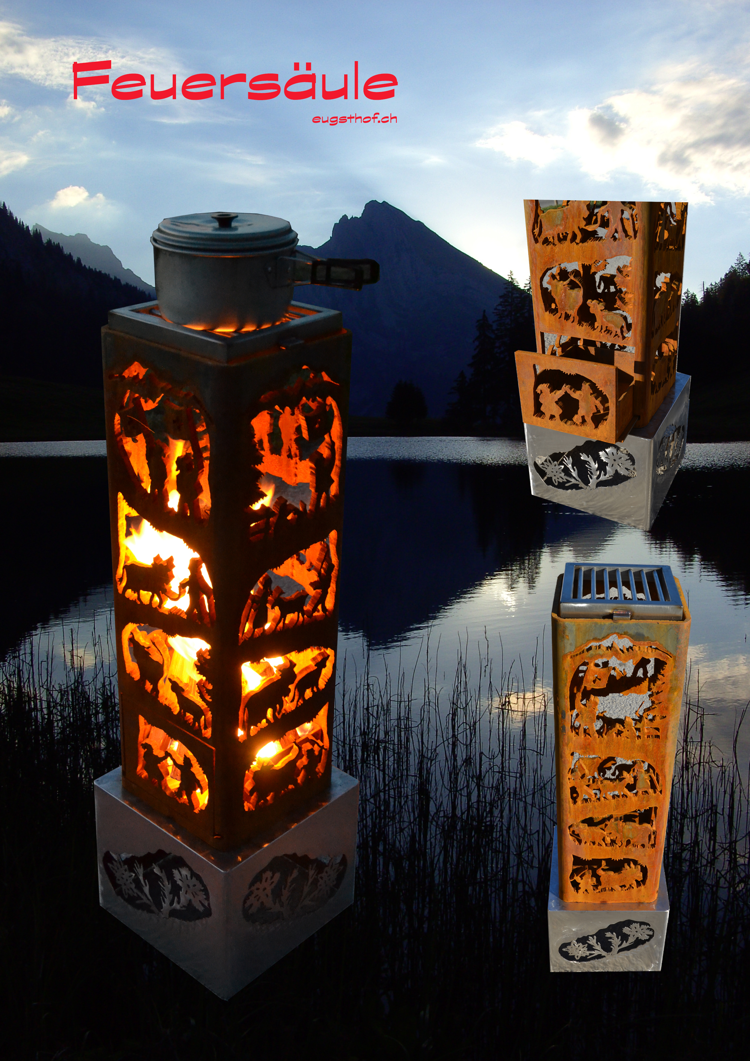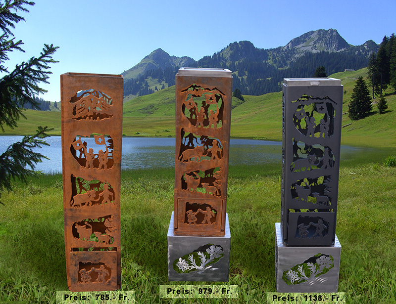 Feuersäule Alpaufzug mit Edelstahlsockel Art. Nr. 200.02