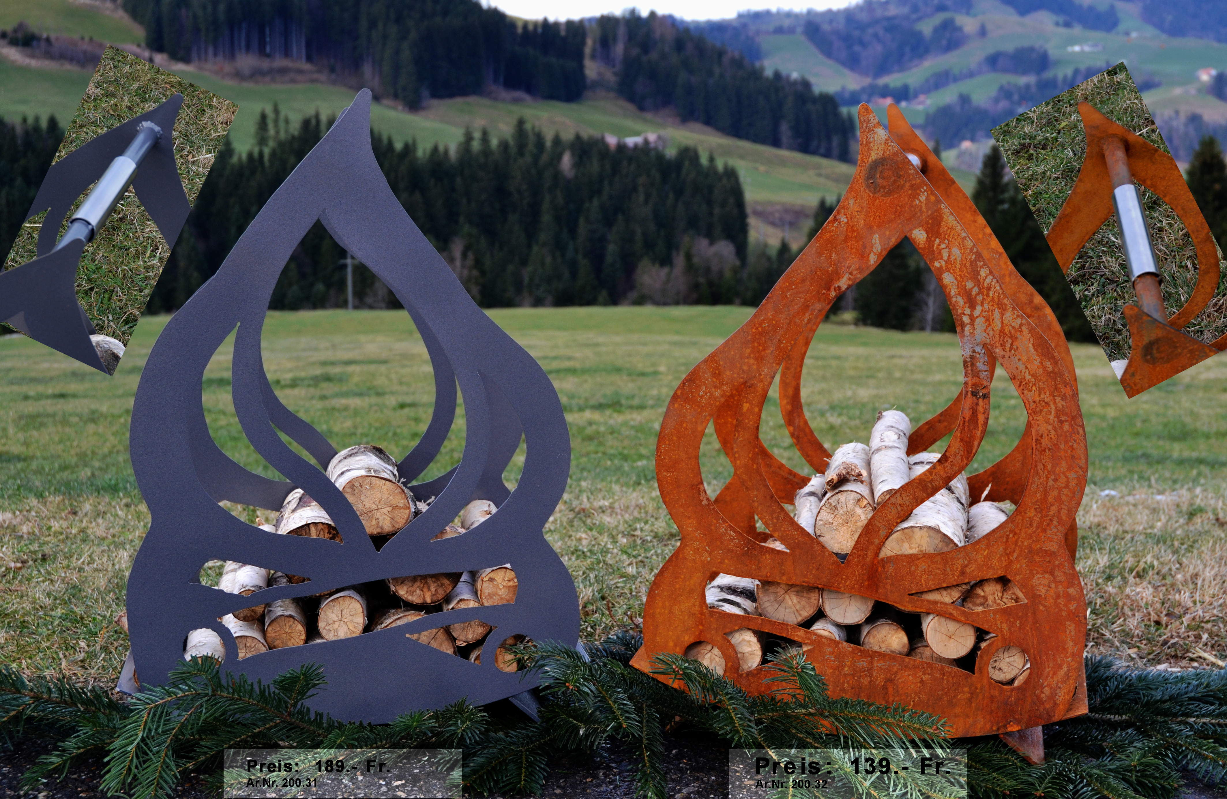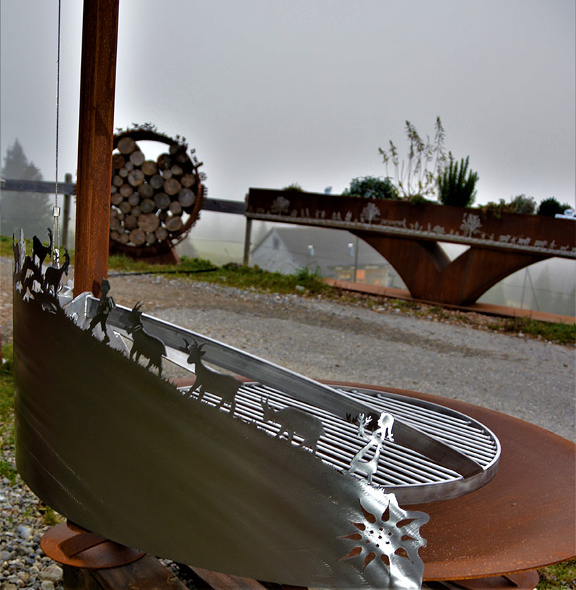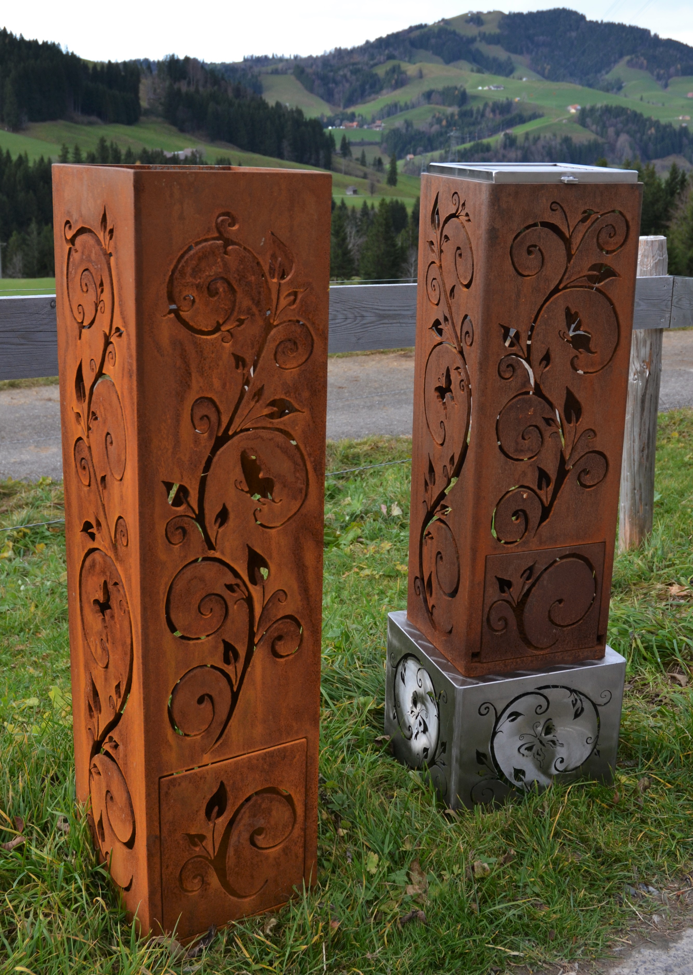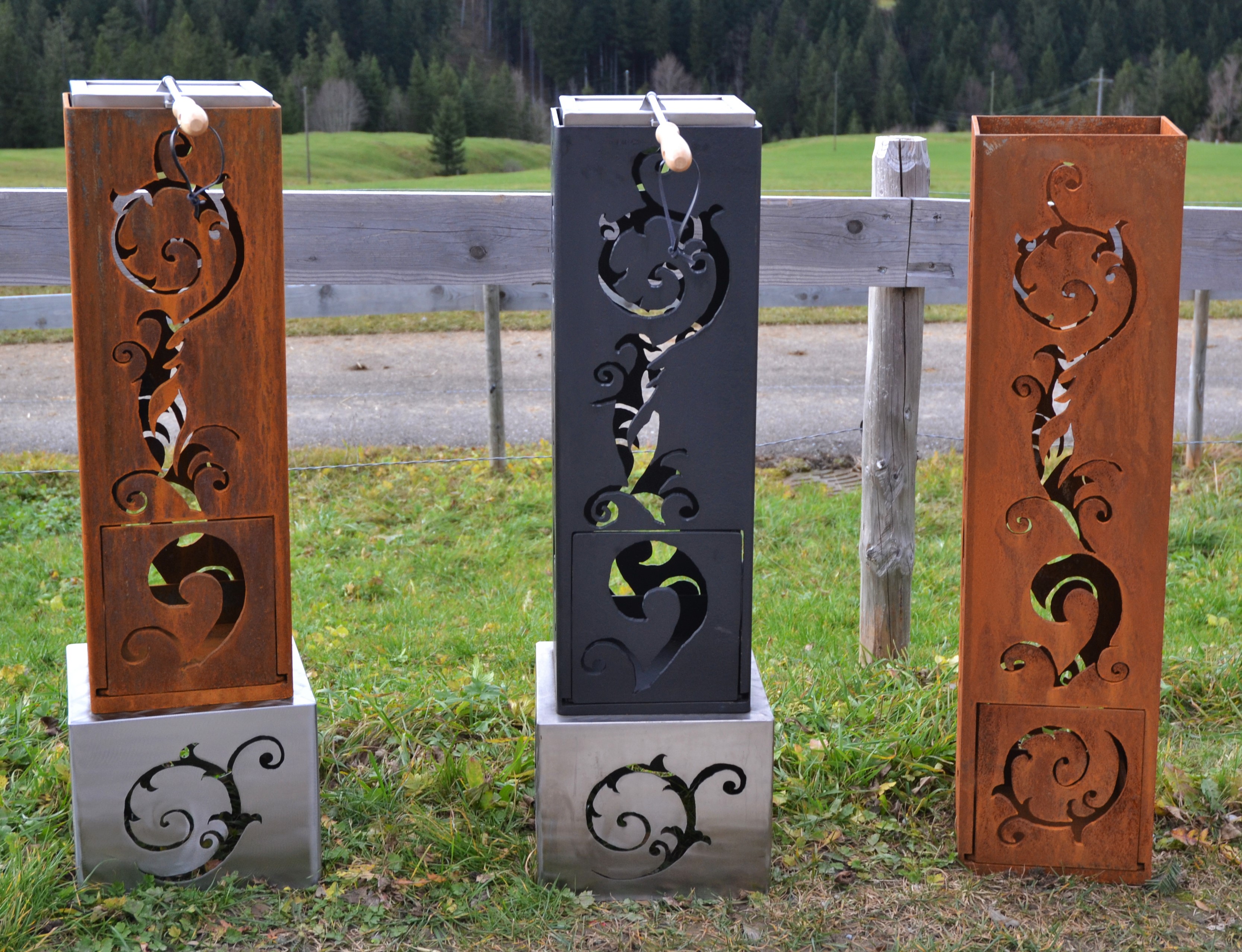 Feuersäule Alpaufzug mit Edelstahlsockel Art. Nr. 200.02