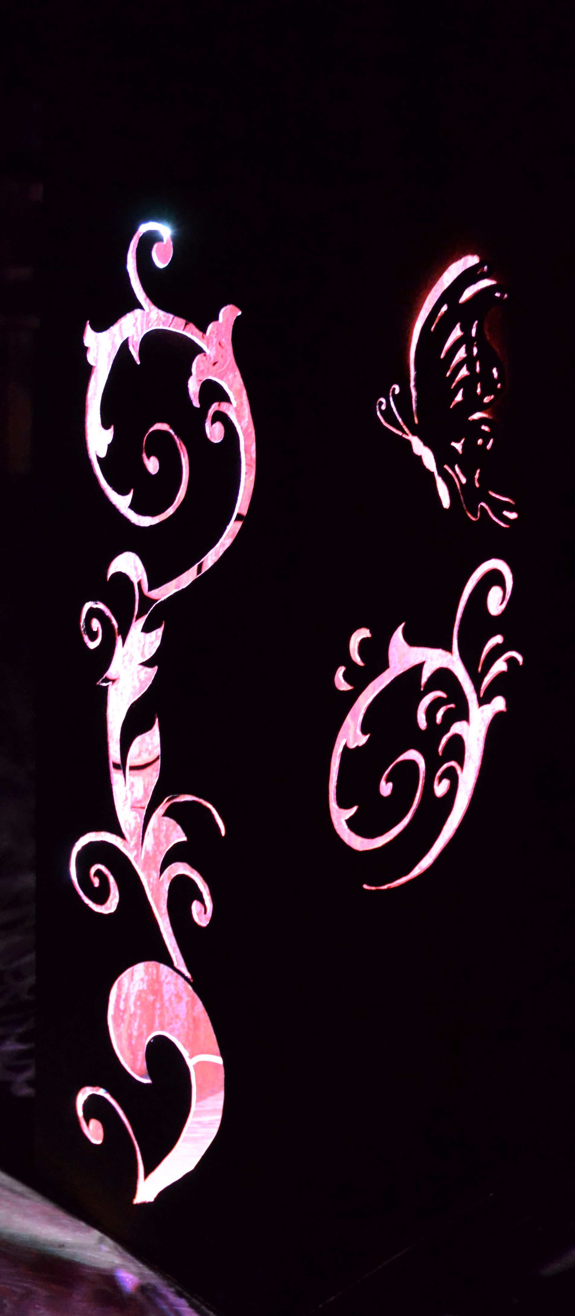 Eisensäule mit Schmetterlingen und Blumen